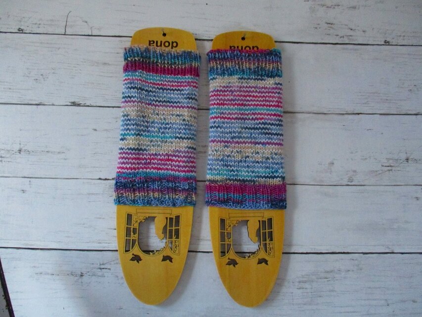 ドイツのブランド Opal Holidays 11240 & イタリアのブランド Regia 4-fädig 1140 キャンディーカラー1140で編んだアームウォーマーです。