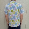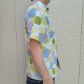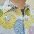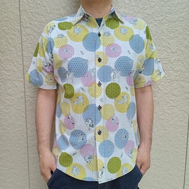 半袖和柄シャツ(水玉和文様に鳥獣戯画の針仕事)