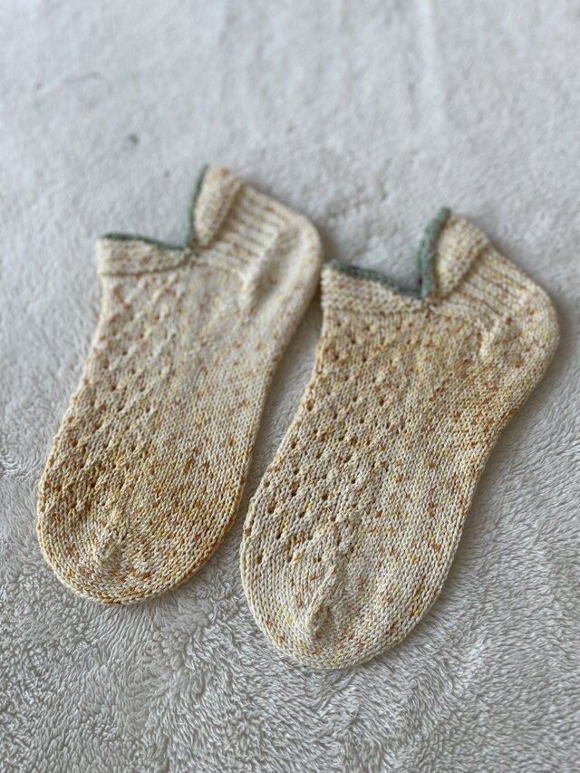 見ているだけで元気をもらえるキレイな色、美しい編み柄でストレスフリーな履き心地のステキな靴下。 大切にしますね。 このたびも、ありがとうございました。