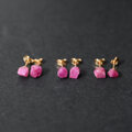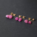 ピンクサファイア ミニピアス 原石 鉱物 天然石 シンプル 仕事 オフィス 通勤 小さい アクセサリー (No.2381)