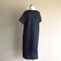 ☆ヨークワンピース 半袖◆ネイビー リネン100%◆S・M・L