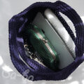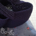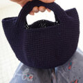 ネイビーのサマーウール100%毛糸で、かわいいバッグに編み上げました。