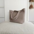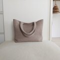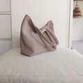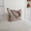 くすみ系のアーモンドカラーの韓国のヌビ生地(ラインキルティング)の軽くて使いやすいシンプルなA4サイズも入る大きめくったりトートバッグです。