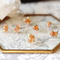 透明の中にオレンジ色の内包物がきらきらと浮かぶサンストーン。