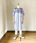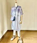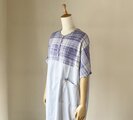 手織りとコードレーンのバルーンワンピ-ス(藤色)