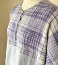 前後見頃とも 胸の切り替えから上は藤色の段染め糸で織りました。