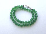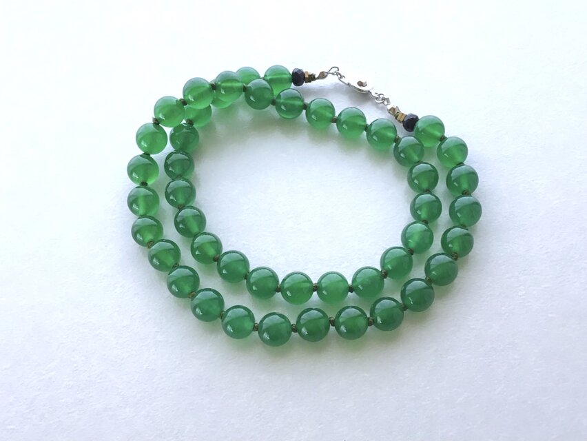透明なグリーンのネックレス、気にいりました。夏は、白Tシャツとジーンズを着ることが多いので、差し色になってくれるのでお気にいりの一つとして使います。しっかりとご丁寧な造りのネックレスだったので、また機会があったら購入したいです。