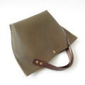 【アウトレットライン・Ⅱ】《牛革》底マチワイド・ダークグリーン「草色」・シュリンクレザー・一枚革のミニトート・0234
