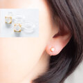 イヤリング部分は金具が目立たず金属アレルギー対応にもなる樹脂ノンホールピアスです。