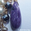 素材:宝石質チャロアイトAAA ドロップ、宝石質ピンクカラーオパールAAA タンブル、宝石質アクアマリンAAA ロンデル、宝石質テラヘルツAAA ラウンドカット、淡水パール ポテト、その他すべて14kgf
