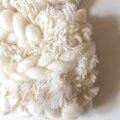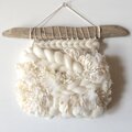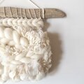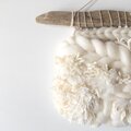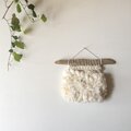 みるく色のふわふわクロスブレッドをたっぷり使用し、極太モヘアやコットン、ファンシーヤーン等と組み合わせたタペストリー。