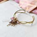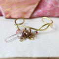 【一点物】原石ピンクトルマリン・クォーツ・パールのなみなみバングル