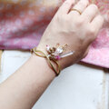 それぞれの個性的な色形表情が響き合い、ブーケのように手首を飾るバングルです。