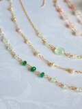 金具には人気の14kgf(ゴールドフィルド)とアーティスティックワイヤーを使用し、チェーンを挟まず天然石を一粒一粒、丁寧にお繋ぎしてお作りしています。