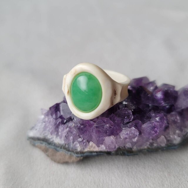 鹿の角と本翡翠、自然の美しさを存分に感じられる指輪です。