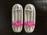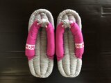 ⚫︎こちらは《グレー》の布ぞうりです。鼻緒のカラーは《フランボワーズ》です。(少し紫寄りの濃いピンク、という印象のカラーです。)