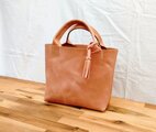 【ヌメ革】手縫いのミニトートバッグ(コンパクト/シンプル/メンズ/レディース/レザー/ミニバッグ/プレゼント)生成り色