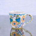 金継ぎ・ブルーのハート鳥の色絵マグ