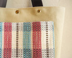 春夏向けのさわやかな色を集めたカントリーチェック柄の手織り布と丈夫な倉敷帆布のコンビネーションで、ミニトートバッグを作りました。