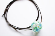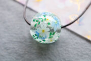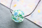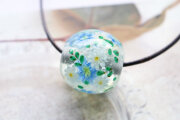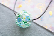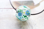 泡を入れた透明の地に、ブルーデイジーとマーガレットを咲かせました。