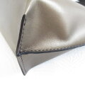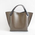 ◎両サイドの底マチの幅を広く取り扇状のシルエットにマッチする幅広でショートなハンドルを