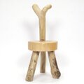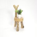 丸太流木と流木枝を組み合わせた、かわいい3本足のイス型の飾り台スタンドです。