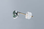 厚みのある宝石ですが、つけた時に違和感なく馴染み、横からの姿も自然に楽しむことができるよう、敢えて針を斜めに立てています。