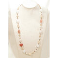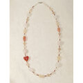 ピンクと赤の可愛い色合いの石で作ったロングネックレスです。赤い大きなハート型のパーツも使っています。大きな石の間には小粒の石を挟んで、動きがスムーズなネックレスになっています。