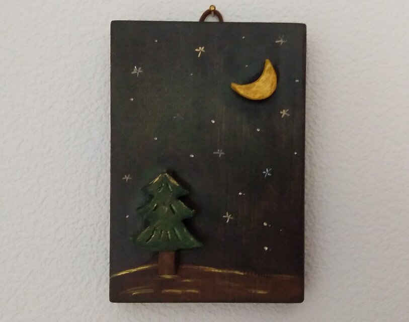 「月と木」 たて約12.8㎝ よこ約8.8㎝ 厚さ約1.8㎝ 3000円