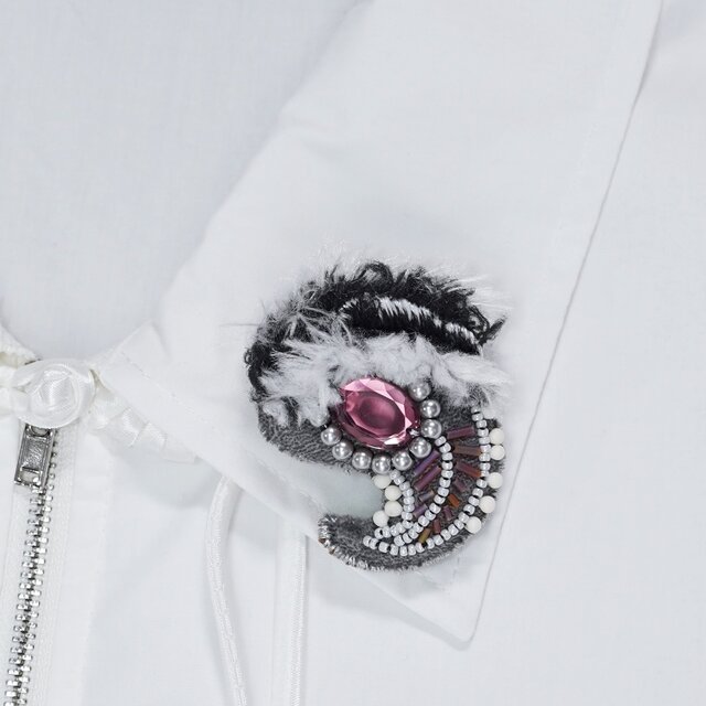とても軽いおゃべりなブローチ2 ビーズ刺繍のブローチ カラフル グレー写真で拝見するより実物は細かく細部に亘って丁寧に繊細にセンスよく…もう脱帽です。これからの季節大活躍のブローチとリングです。 もう出会って10年以上と思いますが、どんどん進化しチャレンジを怠らない姿勢にこれからも期待してます。