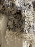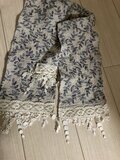 リバティプリントストールにフリンジレースをポイントにしました。