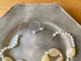 ナイロンコードを使って、オールノット(ビーズの間に結び目を作るパールネックレスによく用いられる技法)で制作いたしました。
