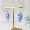 雨粒のようなガラスビーズを木の実のようにつなぎ合わせ、あじさいの花を表現したピアス/イヤリング。