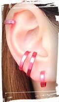 フラットリングイヤリング・イヤーカフ・フェイクピアス・ノンホールピアス・イヤークリップ(金属の両端を曲げないタイプ)に、ピンクレッドカラー直径約12㎜幅約3㎜サイズが登場いたしました