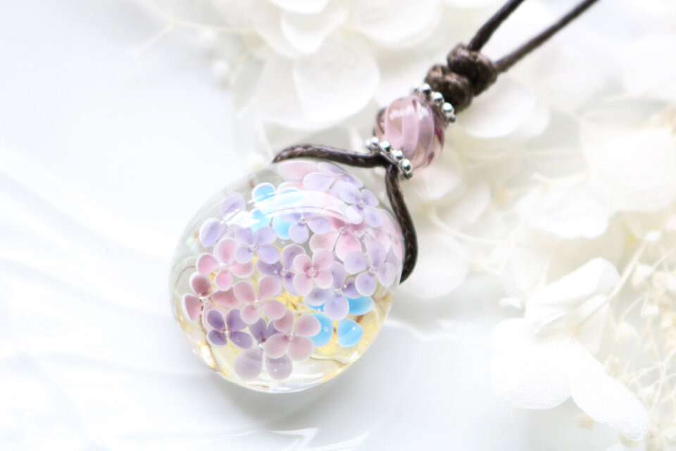 バーナーワークの技法で制作した、手作りのガラスのペンダントです。