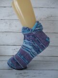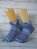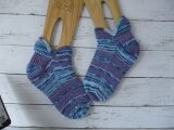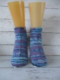 ドイツのブランド Pro Lana 309 紫の夜明け で編んだchiharu.amukoのIDでインスタグラムで活動されている方のレシピで編んだ靴下です。
