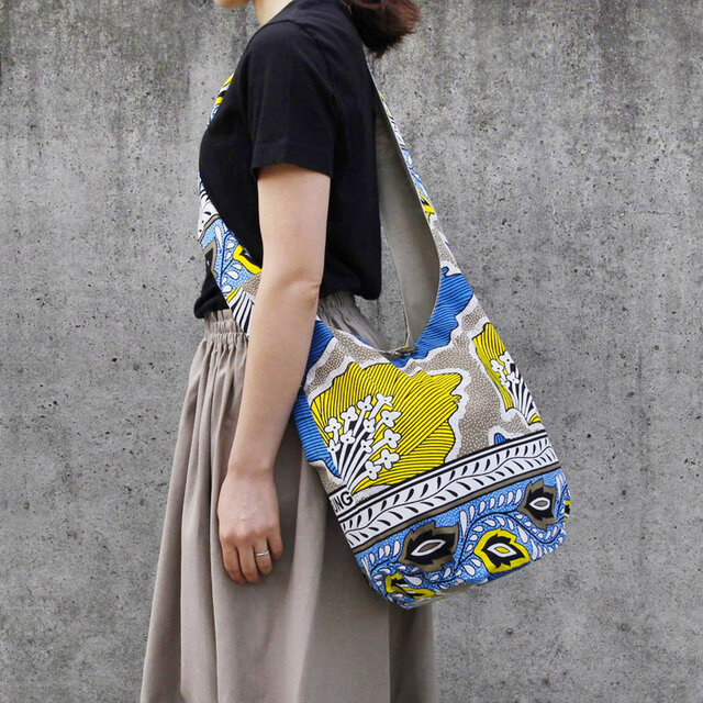 アフリカ布のショルダーバッグ(カンガ)斜めがけ たすき掛け 大きめ ヨガ ピラティス