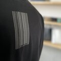 背中にはバーコード、左胸にはワンポイントのロゴプリント付です♪