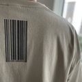 背中にはバーコード、左胸にはワンポイントのロゴプリント付です♪