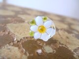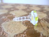 ガラスフュージングという技法で丁寧に手作りいたしました、ちいさなマーガレット・ガラスチャームの、イヤホンジャック・ピアスです。