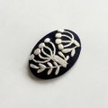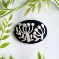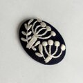サーモンピンクの地に黒い花の刺繍、ありそうでなかったこの色のとりあわせ、すてきなブローチでした。