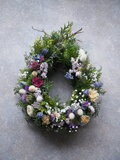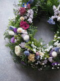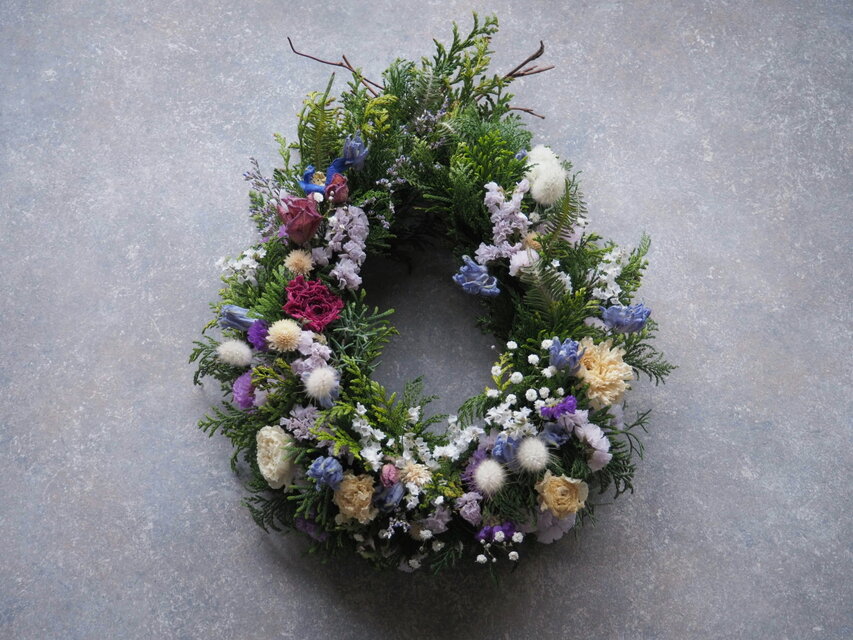 ドライフラワーというよりも、生花を妖精にしたような軽やかなリース。 ありがとうございました。 暑い夏に、萎れる心配をせずに一緒に過ごせる優しい花々と共に、この夏を乗り切ろうと思います。