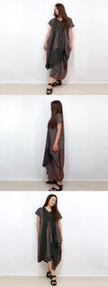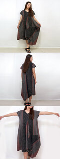 さらっとした軽めの手織り綿絣で仕立てたお洒落で個性的なロングワンピースです。