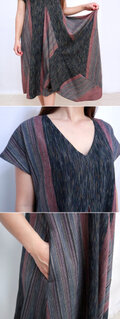 さらっと手織り綿の変わりロングワンピース、絣ストライプ、フリーサイズ