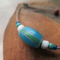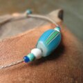 乳白のガラスを中心に青を重ね、縞模様が施されたビーズ。