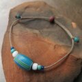 アンティーク 筋玉 青 + シードビーズ ブレスレット 百世 momotose(西)