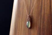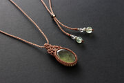 ぷるっとした艶感のプレナイトで仕立てたマクラメペンダントネックレスです。