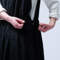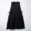 麻 Linen リネン リネンエプロン リネンタブリエ タブリエ エプロン エプロンワンピース ノースリーブワンピース スタンドカラー ピンタック リネンワンピース リネンワンピ オールシーズン 春 夏 秋 冬 ブラック 黒 黒色