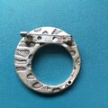 銀の地金を薄ーく延ばして模様をつけ 丸く合わせてあるパーツをブローチに仕立てました。
