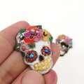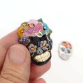色鮮やかで陽気なドクロ(スカル)のピンバッジを作ってみました。